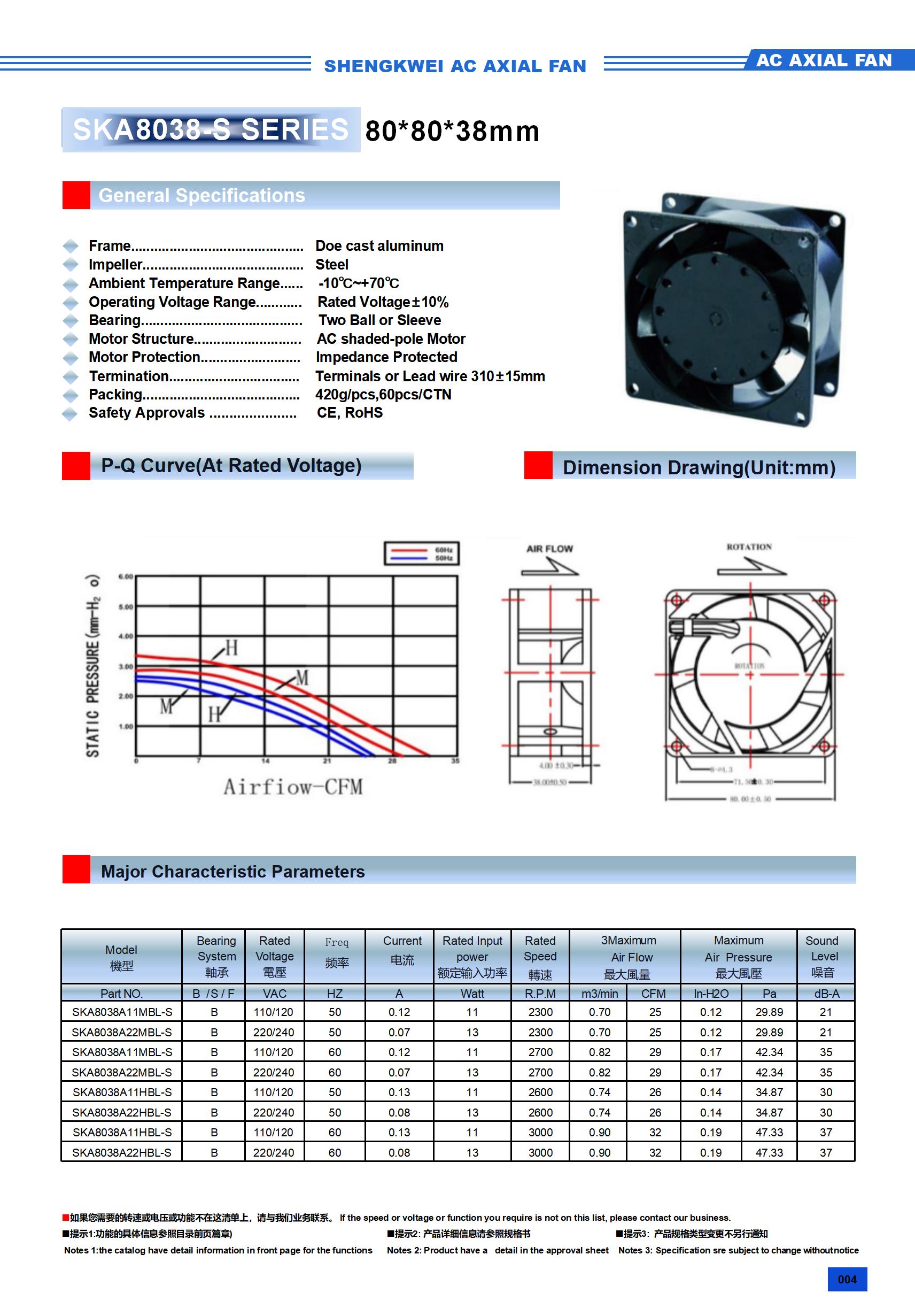 8038金属框叶AC风扇