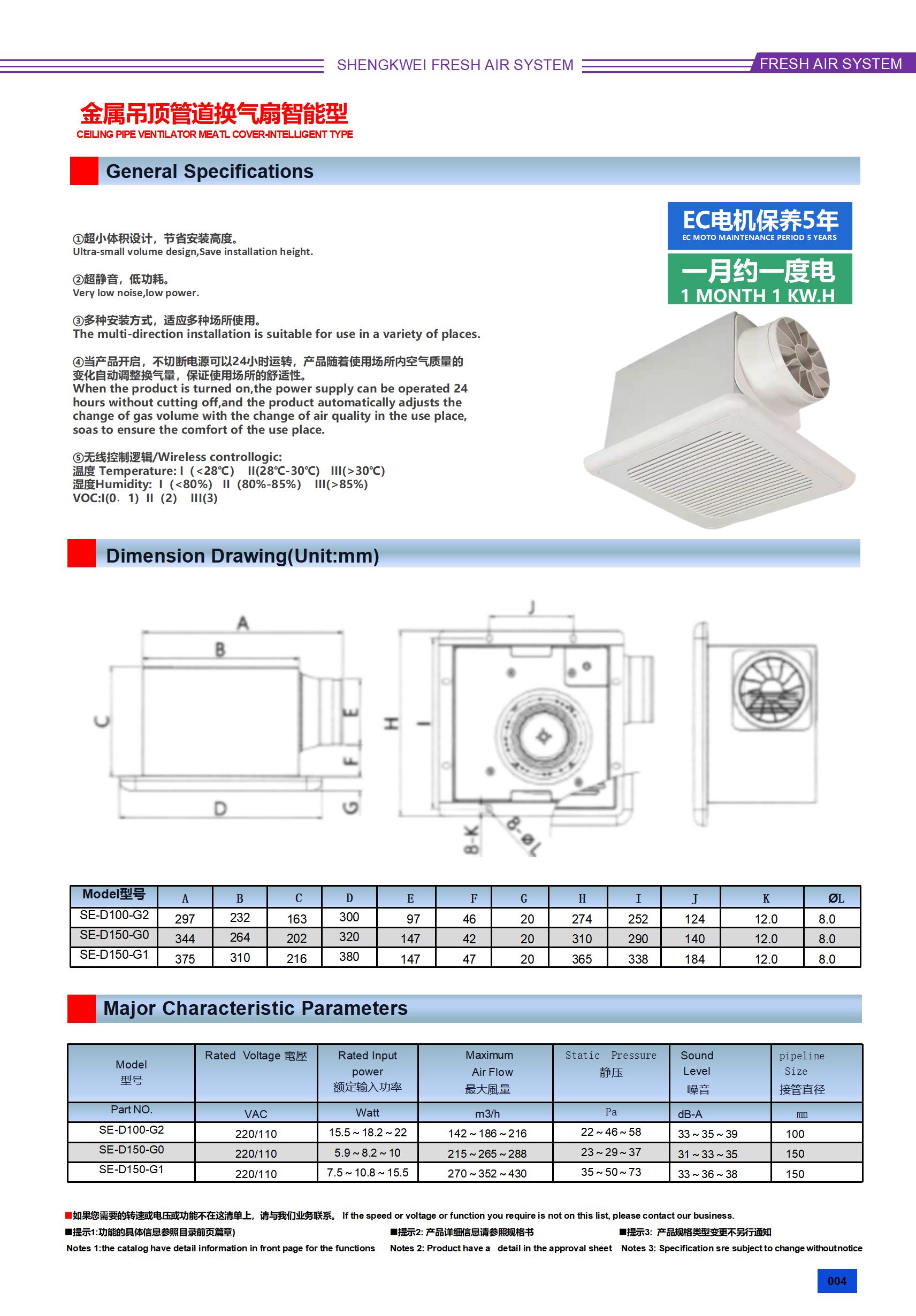金属吊顶管道换气扇-智能型