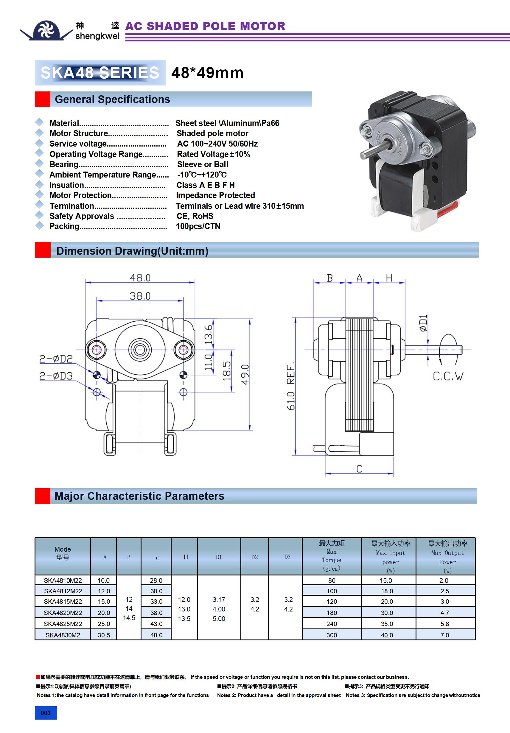 48系列罩极电机